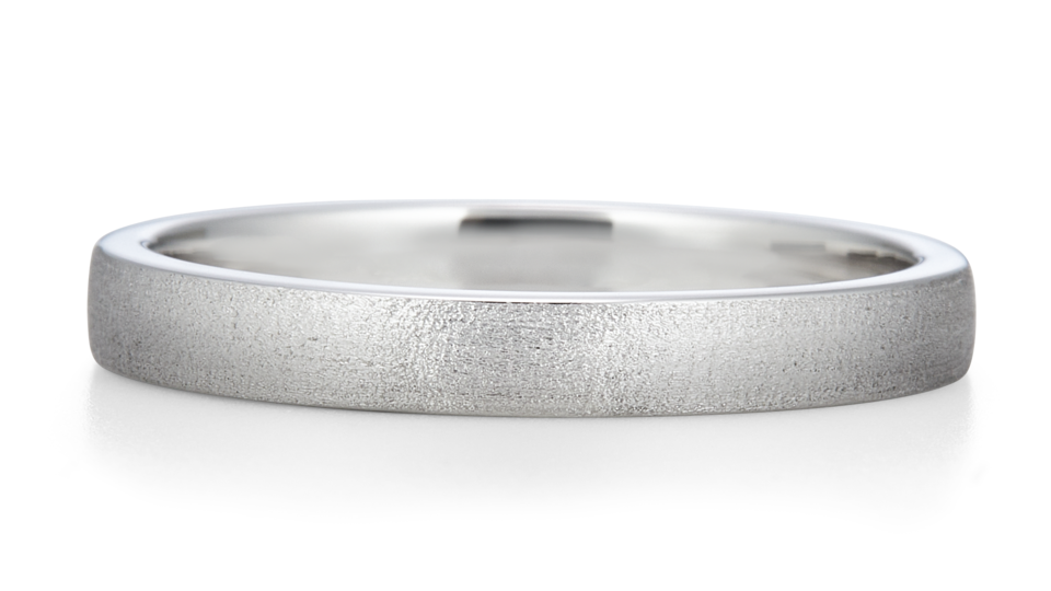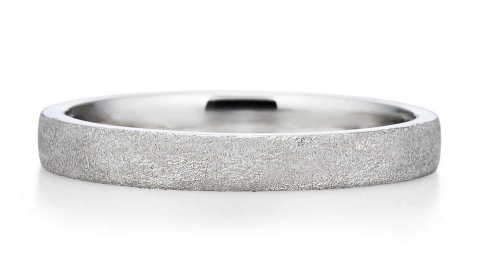 使用高壓空氣向戒指表面噴吹玻璃微粒的加工技法,霧面處理可以抑制原本的金屬光澤之外,也能帶給人一種沈穩的感覺。除此之外,能夠更加凸顯素材原色也是經典霧面的特色之一。
