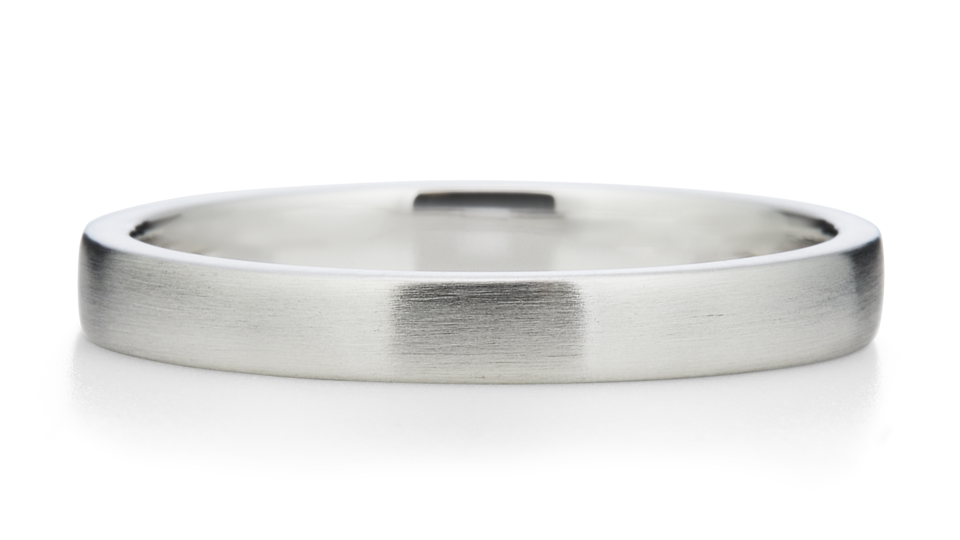 戒指表面上細細的線狀紋路像髮絲一般,故稱為髮絲紋。髮絲紋霧面的視覺效果恰巧在亮面與霧面的中間值,保留了一點亮面的反射與光澤,也帶有一絲霧面的質感,讓戒指展現出柔和的效果。