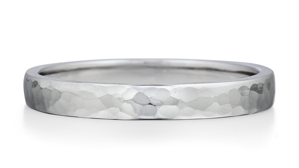 使用錘子敲打戒指表面所製造出來的特殊紋理。藉由使用不同大小的錘子以及從不同的角度加工,可以創造出豐富的紋理。即便是使用同一個錘子去做敲打,每一只戒指所呈現出來的效果也不會一樣,可以凸顯自己的品味風格。